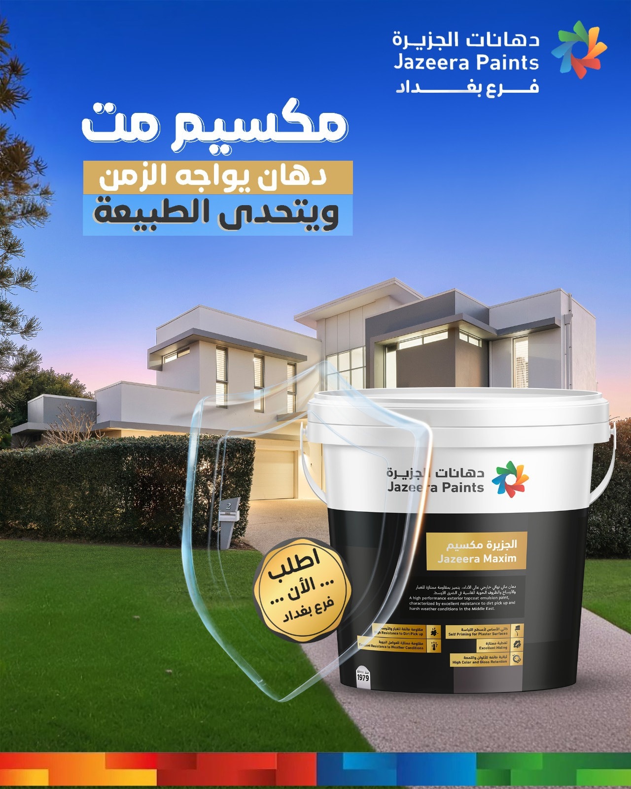 بفضل شراكتنا مع دهانات الجزيرة، نضمن لعملائنا منتجات موثوقة تتميز بالابتكار، الصديقة للبيئة، والمقاومة للعوامل المختلفة، مدعومة بشهادات الجودة الدولية ISO واعتمادات المختبرات العالمية. نسعى في المروج الذهبية إلى تقديم تجربة مميزة لعملائنا من خلال توفير المنتجات الأصيلة، الدعم الفني المتخصص، والاستجابة السريعة لكل احتياجات المشاريع السكنية والتجارية والصناعية.