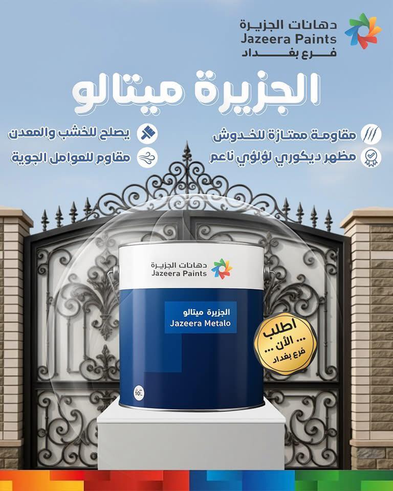 تفتخر شركة المروج الذهبية بكونها الوكيل الرسمي لمنتجات دهانات الجزيرة الرائدة في المملكة العربية السعودية، لتقديم أفضل الحلول اللونية والمستدامة في النجف وبغداد. تسعى شركتنا إلى توفير دهانات عالية الجودة تلبي احتياجات الأسواق العراقية من الدهانات المعمارية، الزخرفية، الصناعية، البحرية، ودهانات الحماية ودهانات الخشب والحديد، مع الالتزام بأعلى معايير الجودة والسلامة.